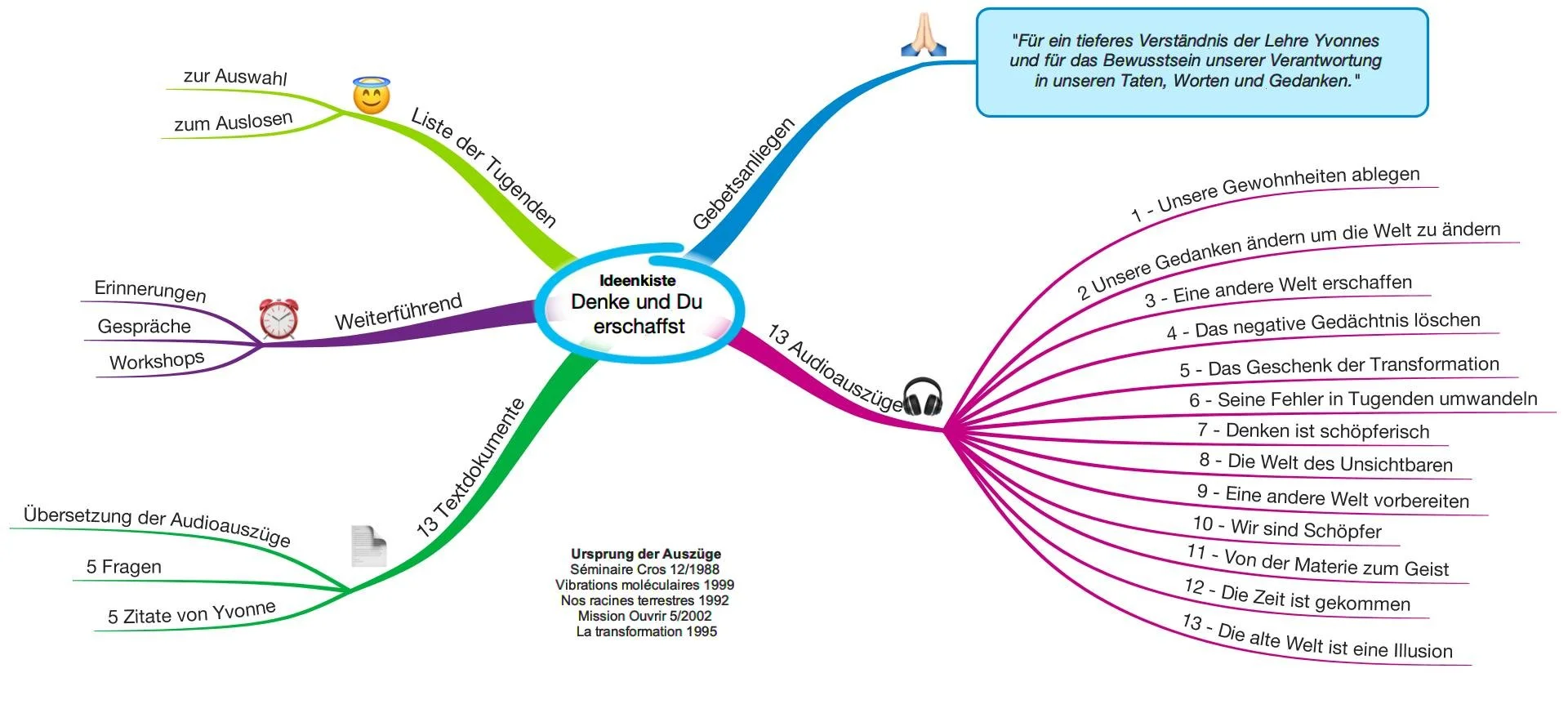 Denke und Du erschaffstFranzösisch l Englisch l Spanisch Zum herunterladen EinführungUnd wie weiter?Tugenden 🎧 1 - Unsere Gewohnheiten ablegen 🎧 2 - Unsere Gedanken ändern um die Welt zu ändern 🎧 3 - Eine andere Welt erschaffen 🎧 4 - Das negative Gedächtnis löschen 🎧 5 - Das Geschenk der Transformation 🎧 6 - Seine Fehler in Tugenden umwandeln 🎧 7 - Denken ist schöpferisch Zurück zur Themenauswahl